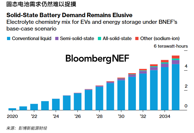 彭博新能源財(cái)經(jīng)基準(zhǔn)情景下2030年全固態(tài)電池需求