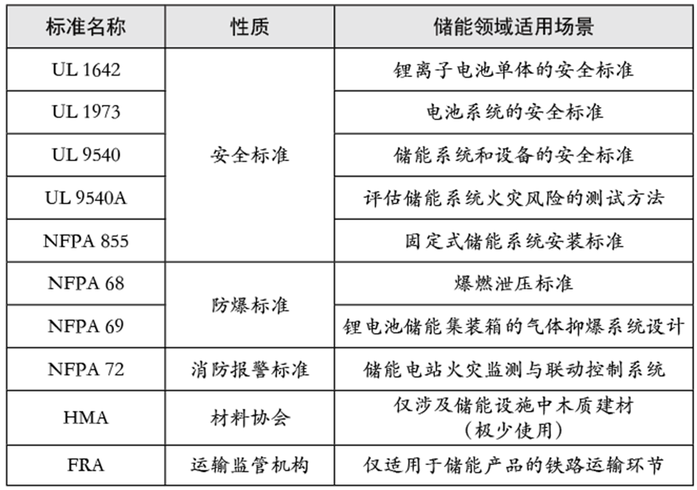 美國對進口儲能產品的標準主要包括UL 1642、UL 1973、UL 9540、UL 9540A、NFPA 69、NFPA 72、NFPA 855、HMA、FRA等,具體標準內容見表1。