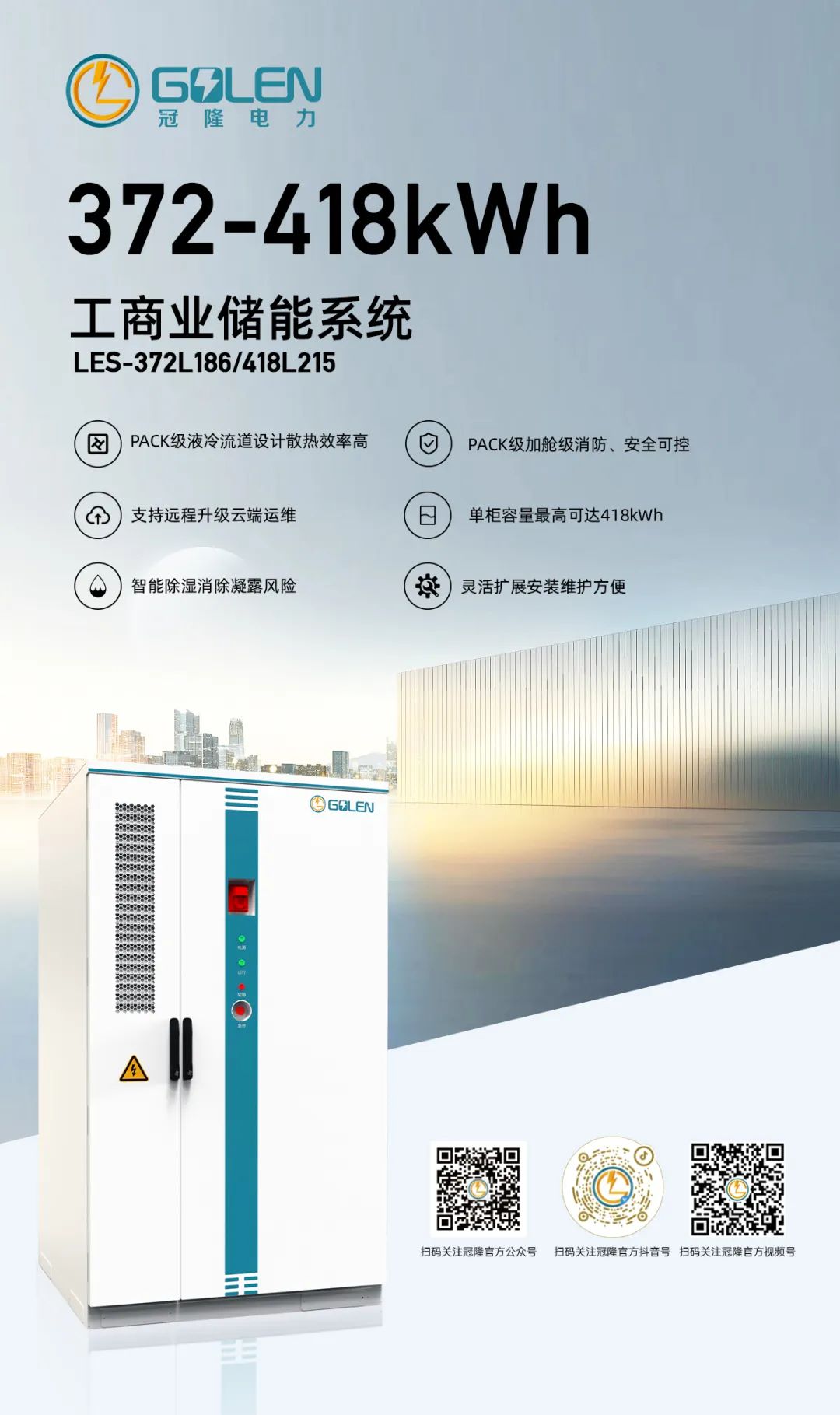 中國(guó)儲(chǔ)能網(wǎng)訊:在工商業(yè)儲(chǔ)能領(lǐng)域,高效、穩(wěn)定、安全的電力保障是企業(yè)運(yùn)營(yíng)的重要支撐。冠隆電力推出的372-418kWh工商業(yè)儲(chǔ)能系統(tǒng),以實(shí)用的技術(shù)與設(shè)計(jì),為工商業(yè)用戶用電管理帶來新選擇。