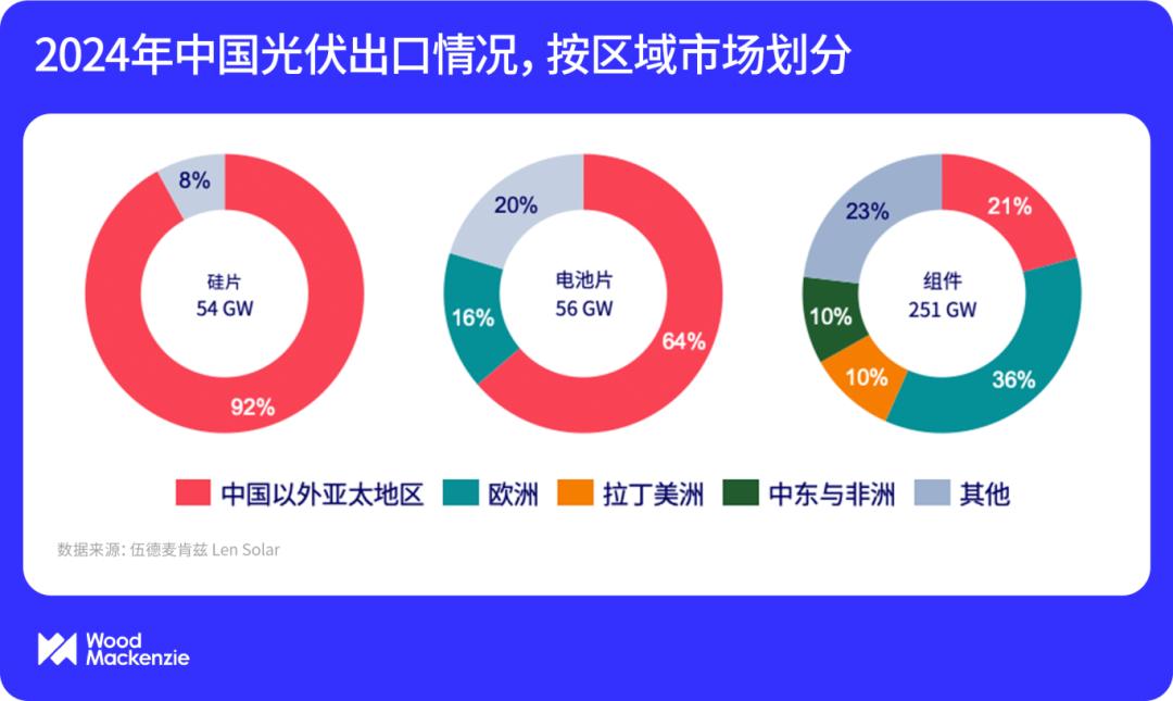 與此同時,全球本地化率要求廣泛普及,東道國政策影響加劇中國光伏出口限制。去年,上游硅片與電池片對東南亞地區(qū)的出口量因美國政策改變而減半,暴露出了傳統(tǒng)出海路徑的脆弱。