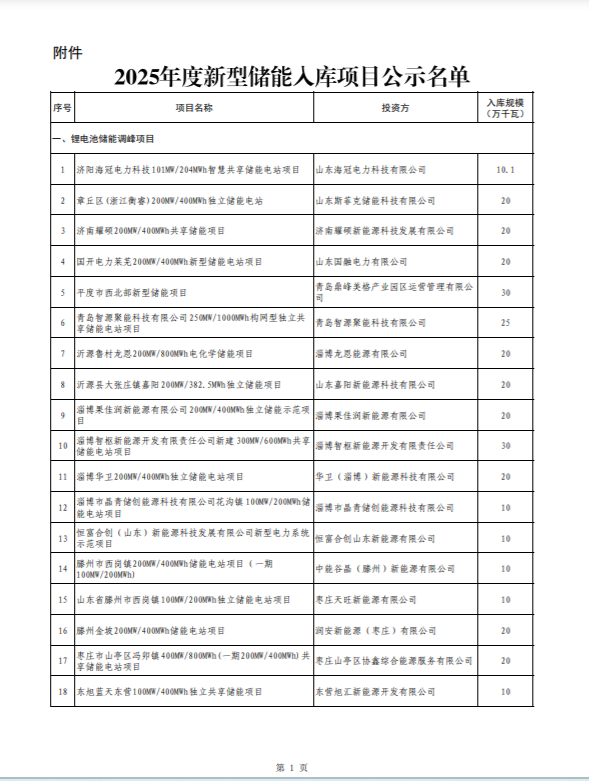 附件:2025年度新型儲(chǔ)能入庫項(xiàng)目公示名單