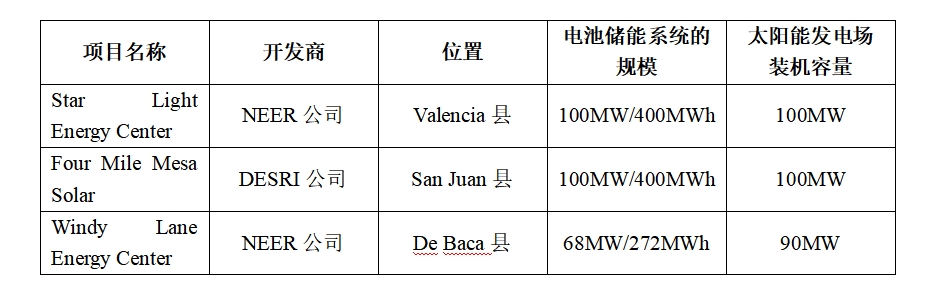PNM公司正在尋求批準(zhǔn)采購(gòu)的三個(gè)太陽(yáng)能+儲(chǔ)能項(xiàng)目的詳情如下表所示: