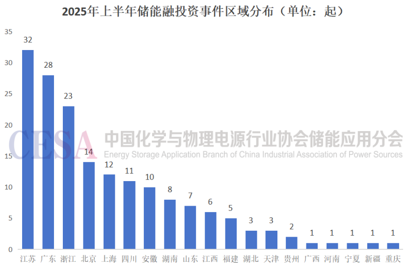 2025年上半年,我國儲能領(lǐng)域一級市場投融資活動呈現(xiàn)多元化與技術(shù)驅(qū)動并行的特征。氫儲能以19起融資領(lǐng)跑,凸顯其在長時儲能和清潔能源轉(zhuǎn)換中的戰(zhàn)略地位;負(fù)極材料緊隨其后18起,反映電池產(chǎn)業(yè)鏈對核心材料性能提升的持續(xù)投入。
