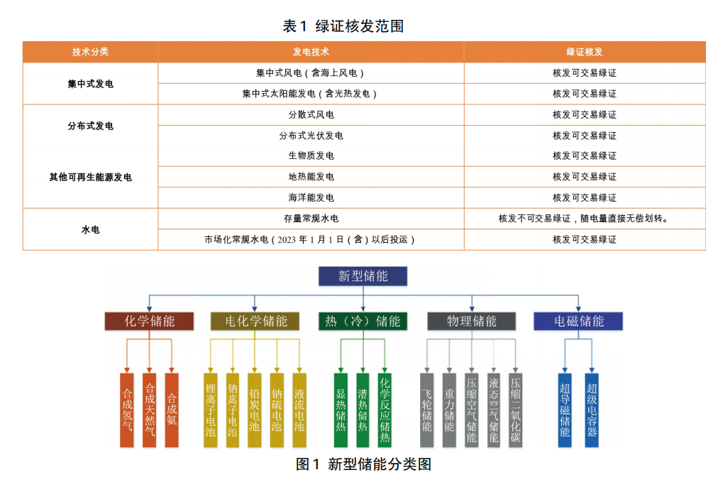 中國儲能網(wǎng)訊:綠證作為可再生能源電力消費憑證,用于可再生能源電力消費量核算、可再生能源電力消費認證等,1個綠證對應1000千瓦時可再生能源電量。國家發(fā)展改革委、財政部、國家能源局《關于做好可再生能源綠色電力證書全覆蓋工作 促進可再生能源電力消費的通知》(發(fā)改能源〔2023〕1044號)明確,綠證是我國可再生能源電量環(huán)境屬性的唯一證明,是認定可再生能源電力生產(chǎn)、消費的唯一憑證。并規(guī)定如表1對全國風電(含分散式風電和海上風電)、太陽能發(fā)電(含分布式光伏發(fā)電和光熱發(fā)電)、常規(guī)水電、生物質發(fā)電、地熱能發(fā)電、海洋能發(fā)電等已建檔立卡的可再生能源發(fā)電項目所生產(chǎn)的全部電量核發(fā)綠證,實現(xiàn)綠證核發(fā)全覆蓋,但并未對儲存新能源的儲能設施核發(fā)綠證作出具體規(guī)定說明。