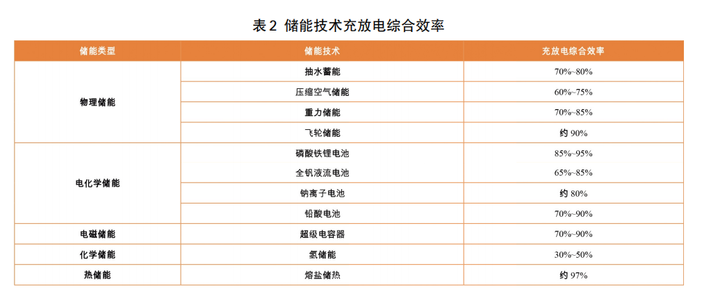 不同儲能技術的技術路線不同,充放電綜合效率也不相同,充放電綜合效率為考慮損耗后放電量和充電量的比值,反映儲能技術存儲能源的效率,表2給出了典型儲能技術的充放電綜合效率。從表2可以看出,不同儲能技術的充放電綜合效率差異較大,在30%到97%之間。