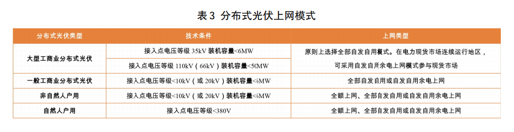 用戶側新能源配儲主要是分布式光伏和分散式風電項目配儲,以分布式光伏配儲為例,根據(jù)國家能源局2025年1月印發(fā)的《分布式光伏發(fā)電開發(fā)建設管理辦法》(國能發(fā)新能規(guī)〔2025〕7號),分布式光伏發(fā)電分為自然人戶用、非自然人戶用、一般工商業(yè)和大型工商業(yè)4種類型,分布式光伏上網(wǎng)模式包括全額上網(wǎng)、全部自發(fā)自用、自發(fā)自用余電上網(wǎng)3種,具體如表3。
