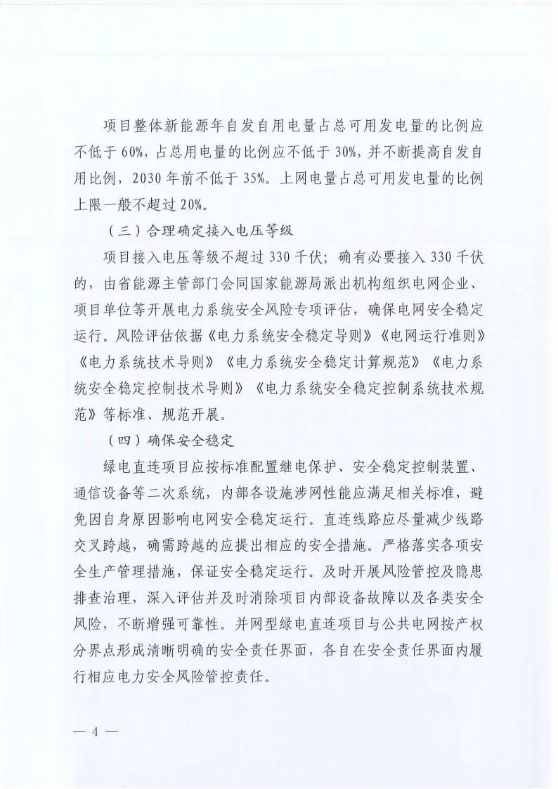 項目整體新能源年自發(fā)自用電量占總可用發(fā)電量的比例應(yīng)不低于60%,占總用電量的比例應(yīng)不低于30%,并不斷提高自發(fā)自用比例,2030年前不低于35%。上網(wǎng)電量占總可用發(fā)電量的比例上限一般不超過20%。