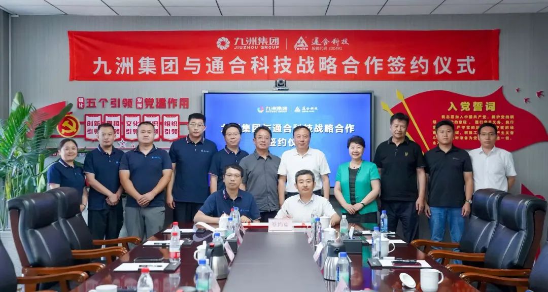 簽約儀式上,九洲集團(tuán)董事長李寅與通合科技董事長馬曉峰共同見證了雙方企業(yè)戰(zhàn)略合作協(xié)議的簽署。根據(jù)協(xié)議,雙方將立足各自技術(shù)積淀與市場資源,在約定的核心業(yè)務(wù)領(lǐng)域展開緊密協(xié)同,通過聯(lián)合研發(fā)、資源共享等方式,共同提升產(chǎn)品競爭力與市場拓展能力。