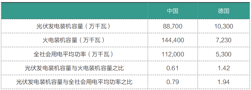 相比之下,截至2024年底,德國的光伏發(fā)電裝機(jī)容量約為1.03億千瓦,火電裝機(jī)容量約為7230萬千瓦,全社會(huì)用電平均負(fù)荷為5300萬千瓦。光伏發(fā)電裝機(jī)容量約為火電裝機(jī)容量的142%,為全社會(huì)用電平均功率的194%。