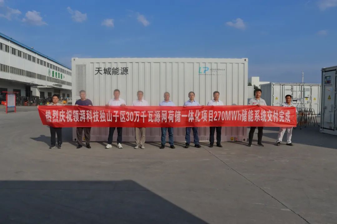 簽約儀式后,舉行了領(lǐng)湃科技獨山子區(qū)30萬千瓦源網(wǎng)荷儲一體化項目270MWh儲能系統(tǒng)交付儀式。