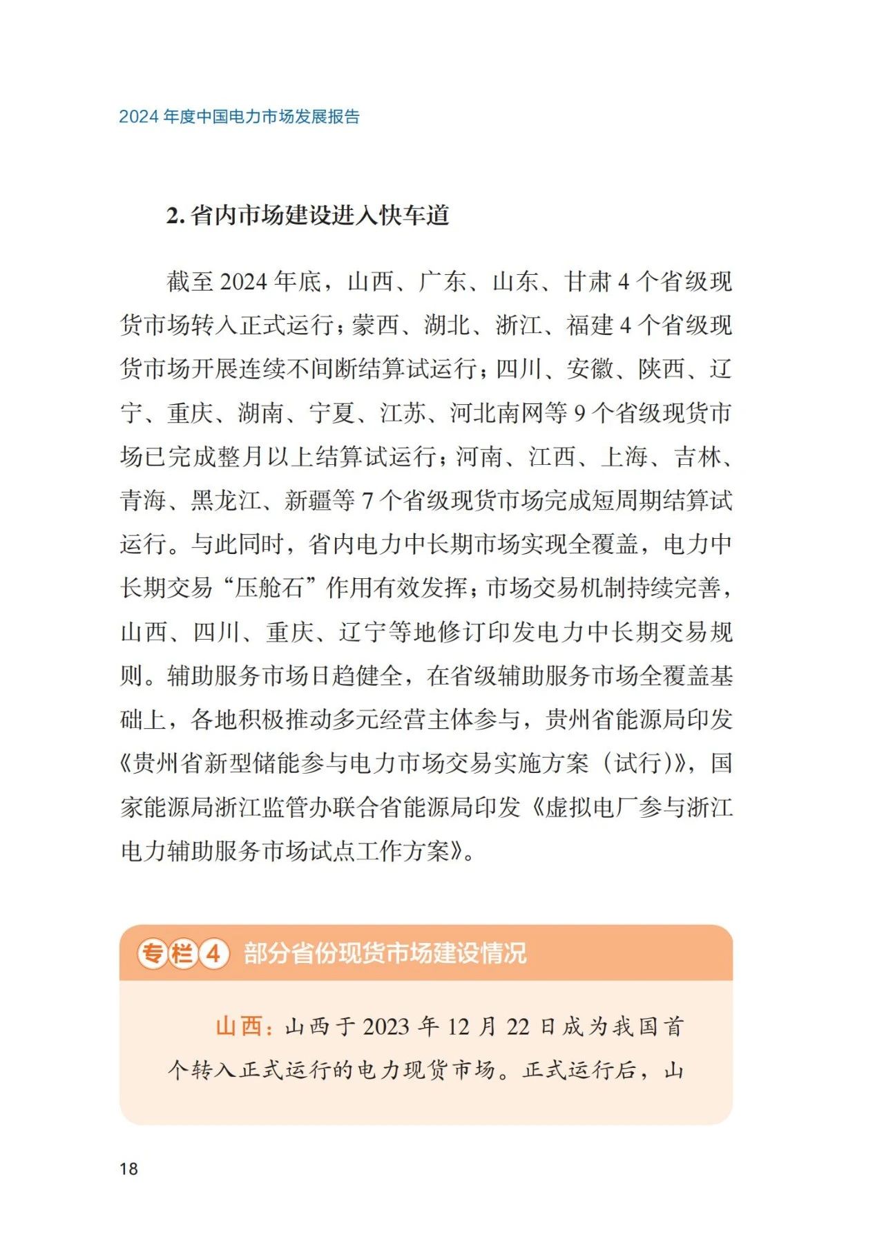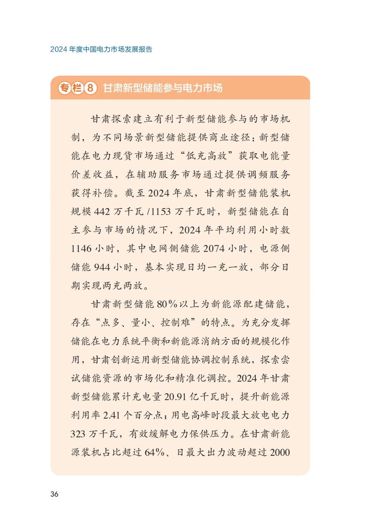 新型儲能參與市場方式更加多樣。2024年,我國新型儲能參與電力市場呈現(xiàn)“政策框架統(tǒng)一、區(qū)域差異化探索技術(shù)多元化應用”的特征,通過參與電能量市場、輔助服務市場等多途徑實現(xiàn)收益。山東、廣東儲能以“報量報價”方式參與現(xiàn)貨,山西儲能可自主選擇“報量報價”或“報量不報價”方式參與現(xiàn)貨,甘肅儲能以“報量不報價”方式參與現(xiàn)貨,在電價高峰放電、低谷充電。廣東、甘肅、山西、山東等地儲能可自主選擇參與現(xiàn)貨和調(diào)頻市場。