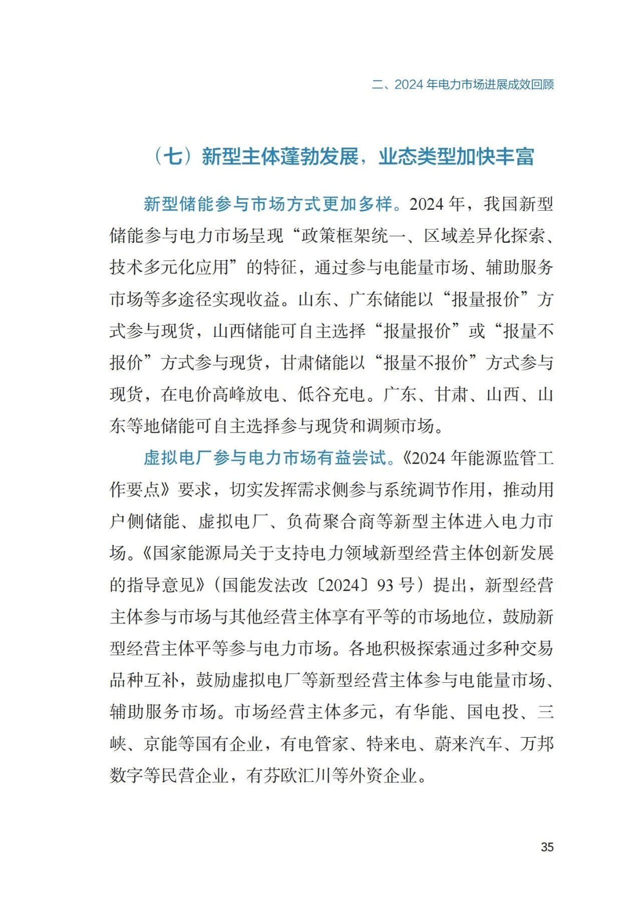 虛擬電廠參與電力市場有益嘗試?!?024年能源監(jiān)管工作要點》要求,切實發(fā)揮需求側(cè)參與系統(tǒng)調(diào)節(jié)作用,推動用戶側(cè)儲能、虛擬電廠、負荷聚合商等新型主體進入電力市場。《國家能源局關(guān)于支持電力領(lǐng)域新型經(jīng)營主體創(chuàng)新發(fā)展的指導意見》(國能發(fā)法改〔2024〕93號)提出,新型經(jīng)營主體參與市場與其他經(jīng)營主體享有平等的市場地位,鼓勵新型經(jīng)營主體平等參與電力市場。各地積極探索通過多種交易品種互補,鼓勵虛擬電廠等新型經(jīng)營主體參與電能量市場,輔助服務市場。市場經(jīng)營主體多元,有華能、國電投、三峽、京能等國有企業(yè),有電管家、特來電、蔚來汽車、萬邦數(shù)字等民營企業(yè),有芬歐匯川等外資企業(yè)。