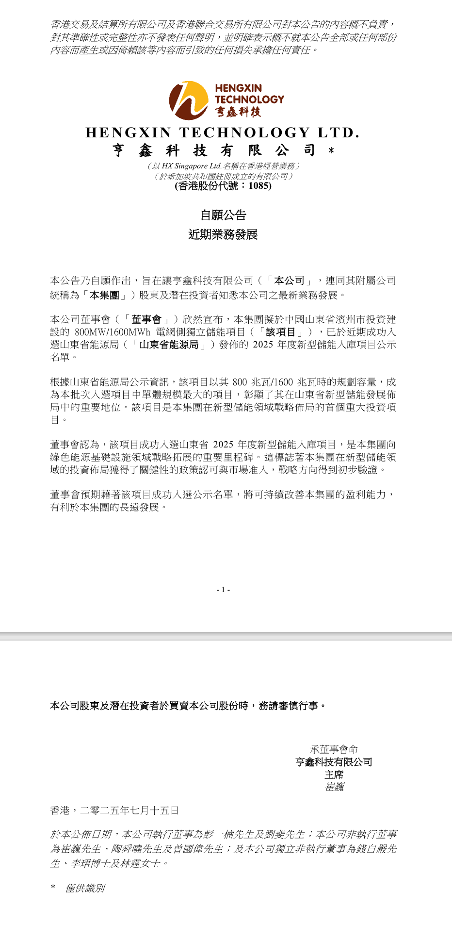 公司董事會認為,項目成功入庫不僅獲得政策層面的高度認可,更為集團在新型儲能領域的市場準入奠定堅實基礎,戰(zhàn)略方向得到初步驗證。董事會預期,該項目的推進將持續(xù)提升集團盈利能力,助力長期可持續(xù)發(fā)展。