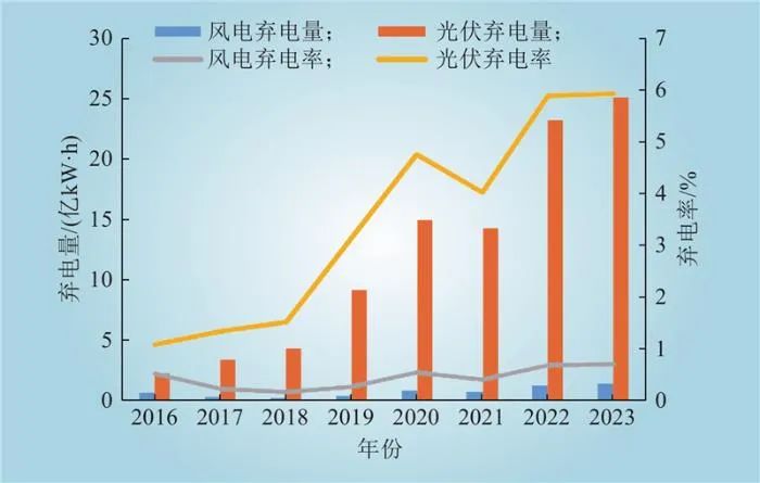 圖1 2016—2023年CAISO運(yùn)營(yíng)區(qū)域新能源棄電量和棄電率分析