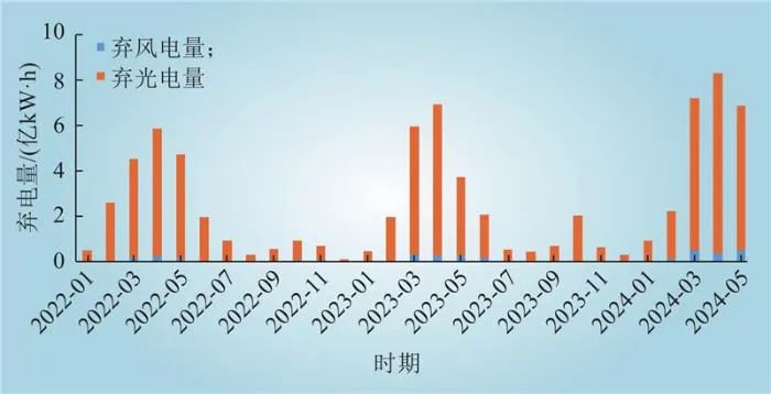 圖3 2022年1月—2024年5月CAISO運(yùn)營(yíng)區(qū)域新能源逐月棄電量分析