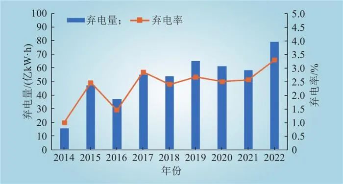 圖5 2014—2022年德國(guó)新能源棄電量和棄電率分析