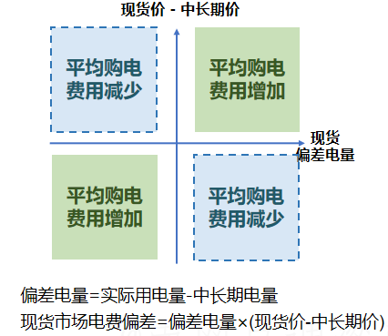 指現(xiàn)貨市場(chǎng)價(jià)格高于用戶簽訂的中長(zhǎng)期合約價(jià)格,且用戶實(shí)際用電量超過(guò)了中長(zhǎng)期合約量(多用)這種情況,典型場(chǎng)景是用電高峰、供應(yīng)緊張導(dǎo)致現(xiàn)貨價(jià)格飆升時(shí)期。