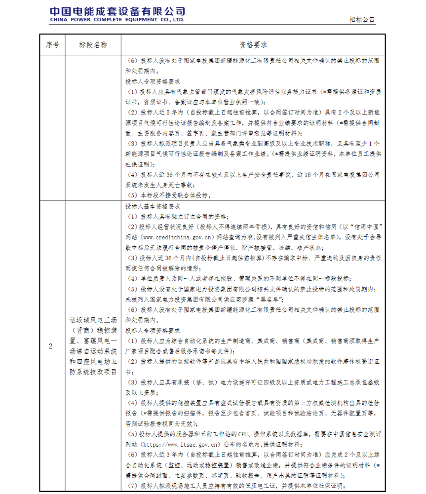 投標(biāo)人資格要求:投標(biāo)人應(yīng)具有氣象主管部門頒發(fā)的氣象災(zāi)害風(fēng)險(xiǎn)評(píng)估業(yè)務(wù)能力證書;投標(biāo)人近5年內(nèi)(自投標(biāo)截止日起往前推算,以合同簽訂時(shí)間為準(zhǔn))具有2個(gè)及以上新能源項(xiàng)目氣候可行性論證報(bào)告編制及備案工作,并提供符合業(yè)績要求的證明材料。