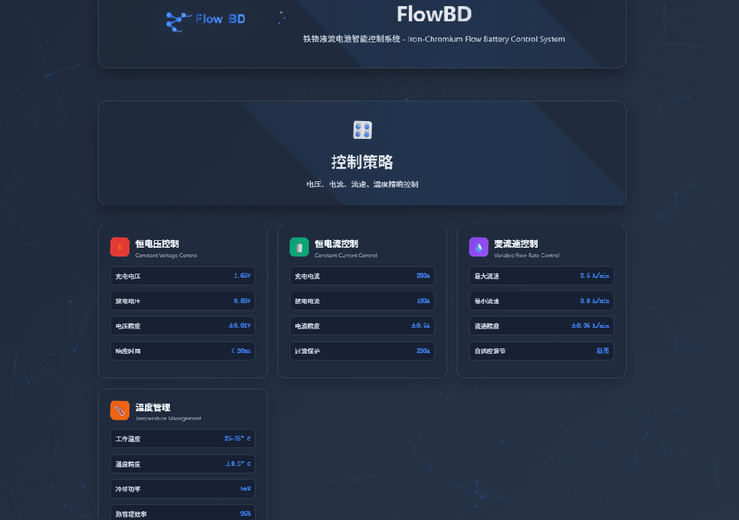 在系統(tǒng)內(nèi)部,F(xiàn)lowBD延續(xù)了其精準(zhǔn)調(diào)控的基因,對(duì)電壓、電流、流速、溫度等核心參數(shù)進(jìn)行毫秒級(jí)響應(yīng)。但其真正的革命性在于AI驅(qū)動(dòng)的電網(wǎng)聯(lián)合調(diào)度能力。FlowBD不再是一個(gè)被動(dòng)的儲(chǔ)能單元,而是一個(gè)主動(dòng)的電網(wǎng)“穩(wěn)定器”和“路由器”。它能夠?qū)崟r(shí)分析電網(wǎng)負(fù)荷、預(yù)測(cè)新能源發(fā)電波動(dòng),并結(jié)合電價(jià)策略,智能制定最優(yōu)的充放電計(jì)劃。這使得鐵鉻液流電池系統(tǒng)在電網(wǎng)調(diào)峰、調(diào)頻、需求側(cè)響應(yīng)等關(guān)鍵場(chǎng)景中發(fā)揮核心作用,最大化儲(chǔ)能資產(chǎn)的經(jīng)濟(jì)與社會(huì)價(jià)值。