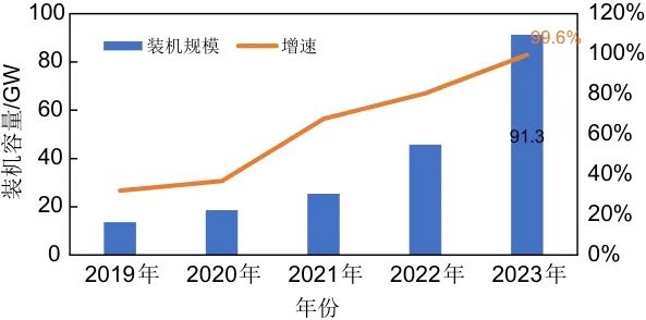 圖1 2019—2023年全球新型儲(chǔ)能累計(jì)裝機(jī)規(guī)模及增速
