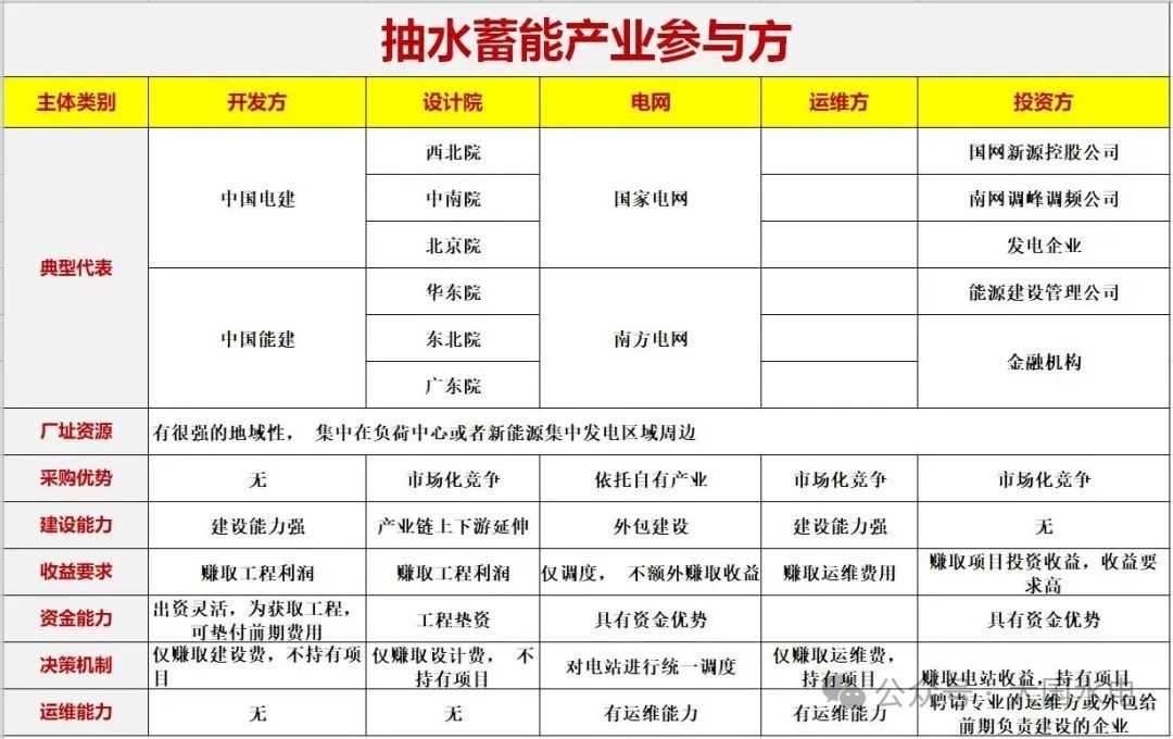 除了電網(wǎng)企業(yè),五大發(fā)電集團(tuán)也在加速布局抽水蓄能,電網(wǎng)企業(yè)、發(fā)電集團(tuán)和電力建設(shè)企業(yè)是抽水蓄能開(kāi)發(fā)的投資主體。