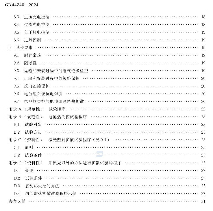 GB 44240—2024《電能存儲系統(tǒng)用鋰蓄電池和電池組 安全要求》規(guī)定了應(yīng)用于電能存儲系統(tǒng)用鋰蓄電池和電池組的安全要求,描述了相應(yīng)試驗方法。
