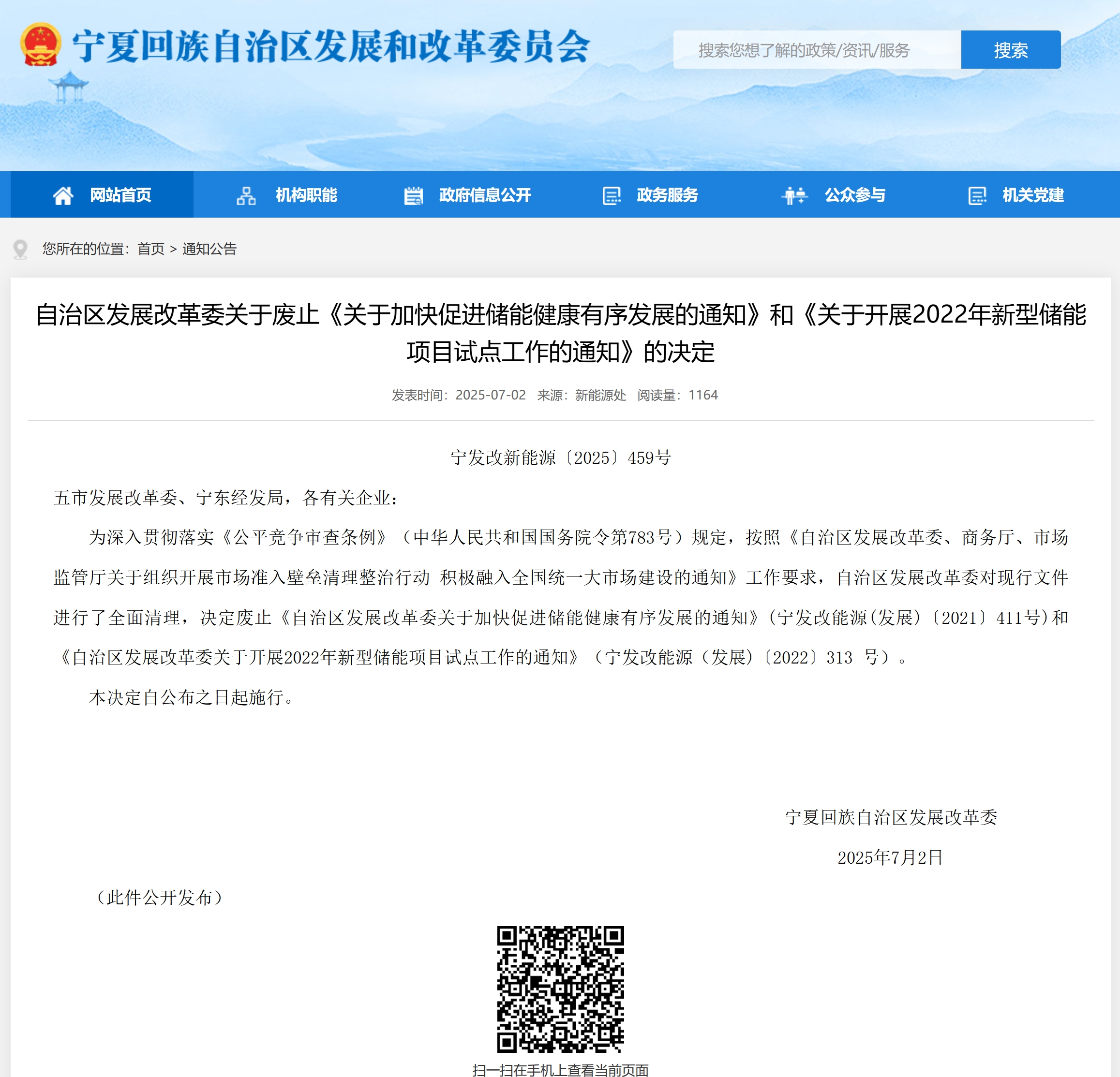 為深入貫徹落實《公平競爭審查條例》(中華人民共和國國務(wù)院令第783號)規(guī)定,按照《自治區(qū)發(fā)展改革委、商務(wù)廳、市場監(jiān)管廳關(guān)于組織開展市場準(zhǔn)入壁壘清理整治行動 積極融入全國統(tǒng)一大市場建設(shè)的通知》工作要求,自治區(qū)發(fā)展改革委對現(xiàn)行文件進行了全面清理,決定廢止《自治區(qū)發(fā)展改革委關(guān)于加快促進儲能健康有序發(fā)展的通知》(寧發(fā)改能源(發(fā)展)〔2021〕411號)和《自治區(qū)發(fā)展改革委關(guān)于開展2022年新型儲能項目試點工作的通知》(寧發(fā)改能源(發(fā)展)〔2022〕313 號)。
