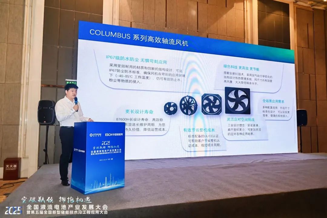 7月24日,Regal Rexnord能效解決方案事業(yè)部亞太區(qū)儲(chǔ)能行業(yè)經(jīng)理陳杰在《電化學(xué)儲(chǔ)能技術(shù)專場(chǎng)》分論壇發(fā)表了重要技術(shù)演講——《聚焦能效挑戰(zhàn) 為儲(chǔ)能應(yīng)用而生:Columbus系列高效軸流風(fēng)機(jī)解決方案》,就儲(chǔ)能行業(yè)市場(chǎng)趨勢(shì)、客戶需求的變化展開分享,并重點(diǎn)介紹了旗下風(fēng)機(jī)行業(yè)“隱形冠軍”品牌NICOTRA | Gebhardt® Columbus系列高效軸流風(fēng)機(jī)解決方案,與現(xiàn)場(chǎng)嘉賓深入探討。