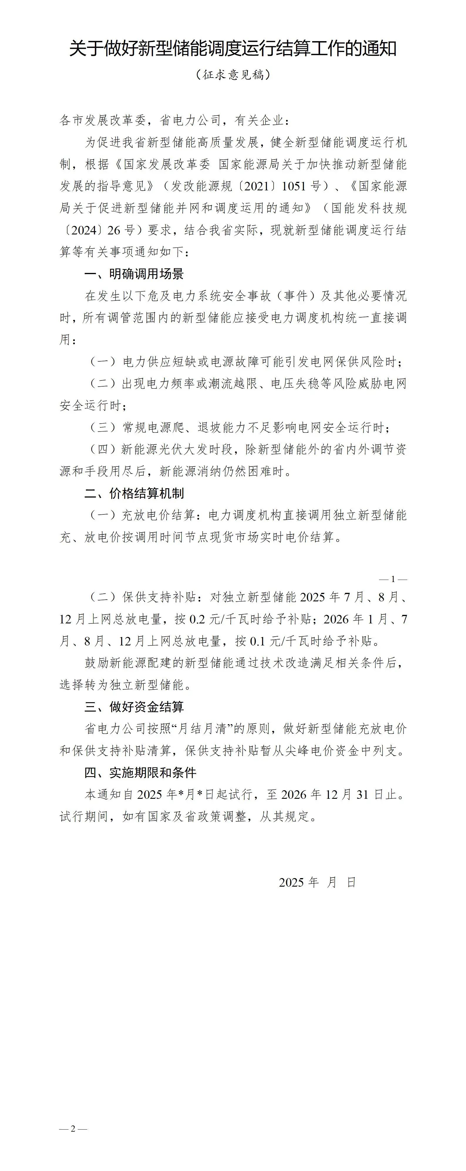 附件:關(guān)于做好新型儲(chǔ)能調(diào)度運(yùn)行結(jié)算工作的通知(征求意見(jiàn)稿)