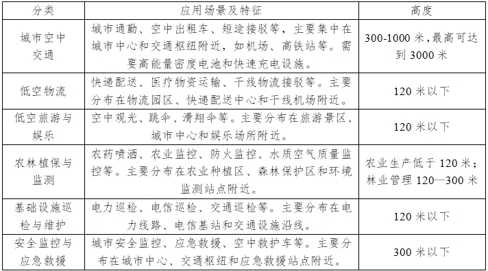 表1:低空經(jīng)濟應(yīng)用場景一覽表
