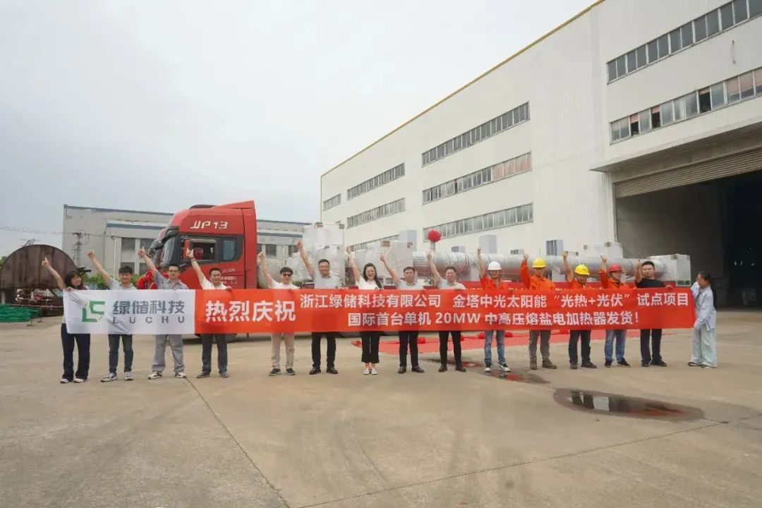 2024年6月24日,綠儲科技舉行全球首臺20MW中高壓熔鹽電加熱器發(fā)貨儀式,設(shè)備抵達金塔項目現(xiàn)場;