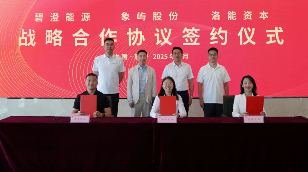 中國儲能網(wǎng)訊:8月12日,象嶼股份與杭州碧澄能源發(fā)展有限公司(以下簡稱“碧澄能源”)、洛能(杭州)股權(quán)投資有限公司(“洛能資本”)簽署戰(zhàn)略合作協(xié)議。象嶼集團(tuán)黨委委員、副總裁,象嶼股份黨委書記、董事長吳捷,碧澄能源董事長、洛能資本首席執(zhí)行官李文軒,碧澄能源總經(jīng)理龐博,象嶼能源發(fā)展董事黃盛宇出席并見證簽約。象嶼股份副總經(jīng)理卓薇,碧澄能源副總裁兼首席營銷官趙蘇,洛能資本首席投資官、副總經(jīng)理楊郁分別代表三方簽署戰(zhàn)略合作協(xié)議。