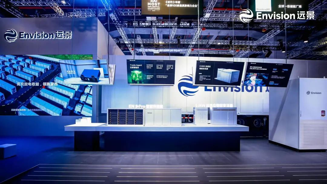 在Envision MIC的系統(tǒng)級產(chǎn)品區(qū),遠景呈現(xiàn)了從電芯、Pack、PCS到系統(tǒng)的全棧產(chǎn)品鏈路。遠景今年發(fā)布的智慧儲能系統(tǒng)EN 8 Pro搭載遠景動力700+Ah電芯,單箱容量突破8MWh;遠景動力500+Ah電芯也于5月實現(xiàn)行業(yè)率先量產(chǎn)。在系統(tǒng)級方案區(qū),遠景創(chuàng)新 “儲能+”綜合解決方案,針對未來電力系統(tǒng)中源網(wǎng)荷儲一體化趨勢,提供多場景融合應(yīng)用方案。此外,遠景儲能還展示了交易、構(gòu)網(wǎng)等技術(shù)與全生命周期服務(wù)、全棧安全等系統(tǒng)能力。