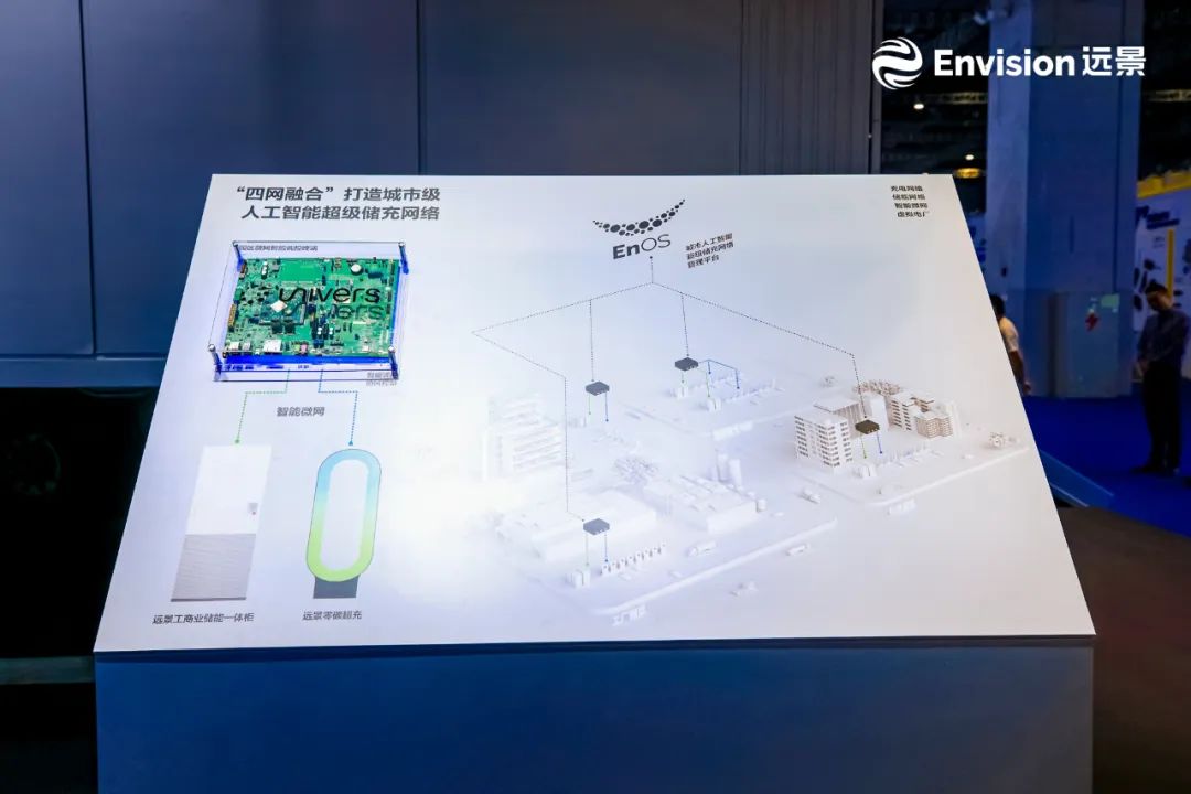 本次展會中,遠景零碳綜合能源業(yè)務(wù)發(fā)布重磅網(wǎng)絡(luò)級新品——人工智能超級儲充網(wǎng)絡(luò),將儲能、充電、人工智能調(diào)度與電力交易深度協(xié)同,打造 “四網(wǎng)融合”的智慧能源生態(tài)系統(tǒng)。其中,超快充網(wǎng)絡(luò)為新能源汽車高效補能,儲能網(wǎng)絡(luò)以削峰填谷緩解電網(wǎng)沖擊,智能微網(wǎng)用于調(diào)控分布式能源、儲能與負(fù)荷,而虛擬電廠可通過聚合多元分布式可調(diào)資產(chǎn)參與電力市場交易。