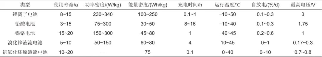 表1 不同儲(chǔ)能電池特點(diǎn)的對(duì)比