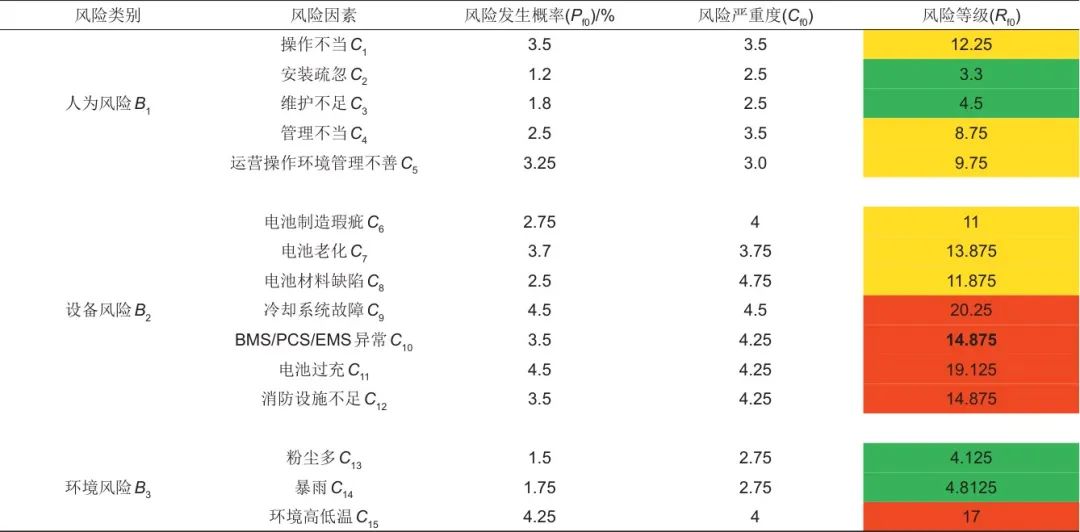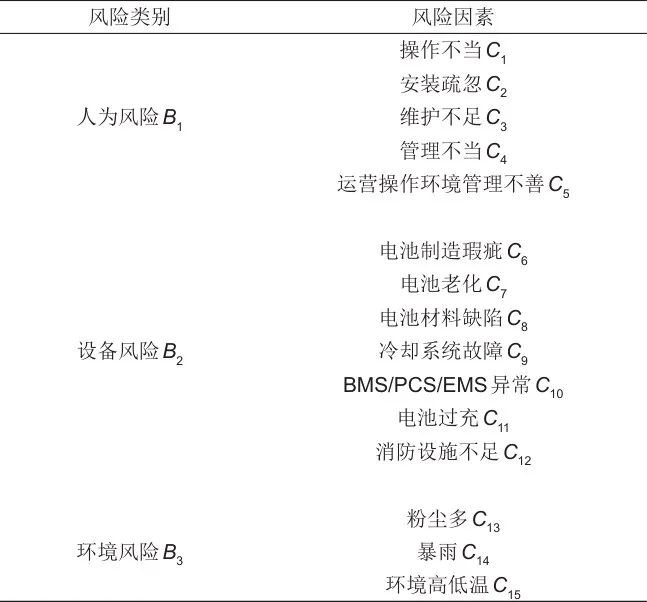 表3 儲(chǔ)能電站風(fēng)險(xiǎn)類別和風(fēng)險(xiǎn)因素