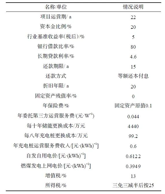 本項目是某大型國有能源企業(yè)通過“投資+EPC”方式,利用公路紅線內(nèi)的可利用空地,開發(fā)沿線光伏等可再生能源資源,構(gòu)建“源-網(wǎng)-荷-儲”多層級一體化交能融合系統(tǒng),為基礎(chǔ)設(shè)施和運輸車輛提供綠色清潔能源。項目所在地為華北某區(qū)域,光伏年平均利用小時數(shù)1096小時,路域光伏119兆瓦,服務(wù)區(qū)和收費站光伏5兆瓦,充電樁32座,智慧路燈16套,風(fēng)機32套,儲能10兆瓦時。項目經(jīng)濟評價參數(shù)如下表所示。
