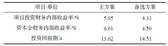 本項目將利用光儲充一體化系統(tǒng),光伏發(fā)電“自發(fā)自用,余電上網(wǎng)”,項目收益增長點主要為充電樁運營收入的方案,作為項目運營的主方案。同時為全方位考慮本項目售電風(fēng)險,將取消建設(shè)充電樁,光伏發(fā)電全額上網(wǎng)的方案作為項目運營的備選方案。依據(jù)前述邊界條件及相關(guān)參數(shù),經(jīng)初步測算,得到主方案和備選方案的稅后經(jīng)濟評價結(jié)果,具體如下表所示。其中備選方案的資本金財務(wù)內(nèi)部收益率低于行業(yè)基準(zhǔn)收益率5%,方案不可行。