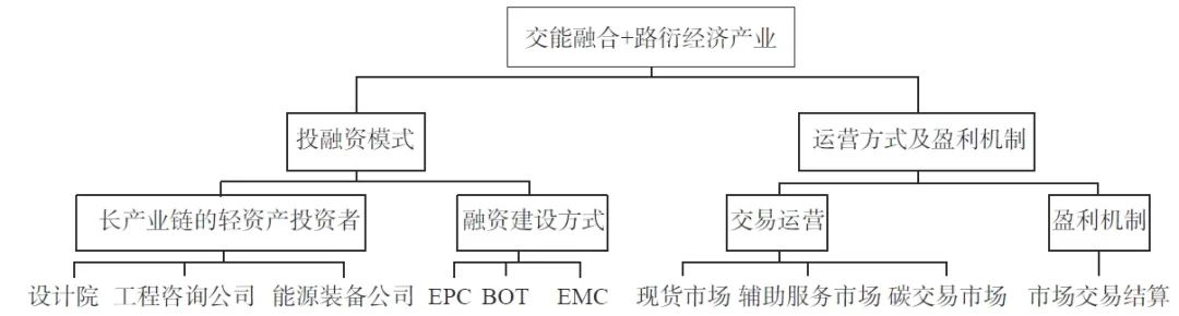 針對“交能融合+路衍經(jīng)濟產(chǎn)業(yè)”協(xié)同模式的項目,長產(chǎn)業(yè)鏈的輕資產(chǎn)投資者通過EPC、BOT、EMC等方式進行融資建設(shè),與路衍經(jīng)濟的不同產(chǎn)業(yè)用戶進行市場交易,增加新能源消納,促進節(jié)能減排,并通過市場交易結(jié)算的方式獲得運營收益。場景內(nèi)容具體如下圖所示。