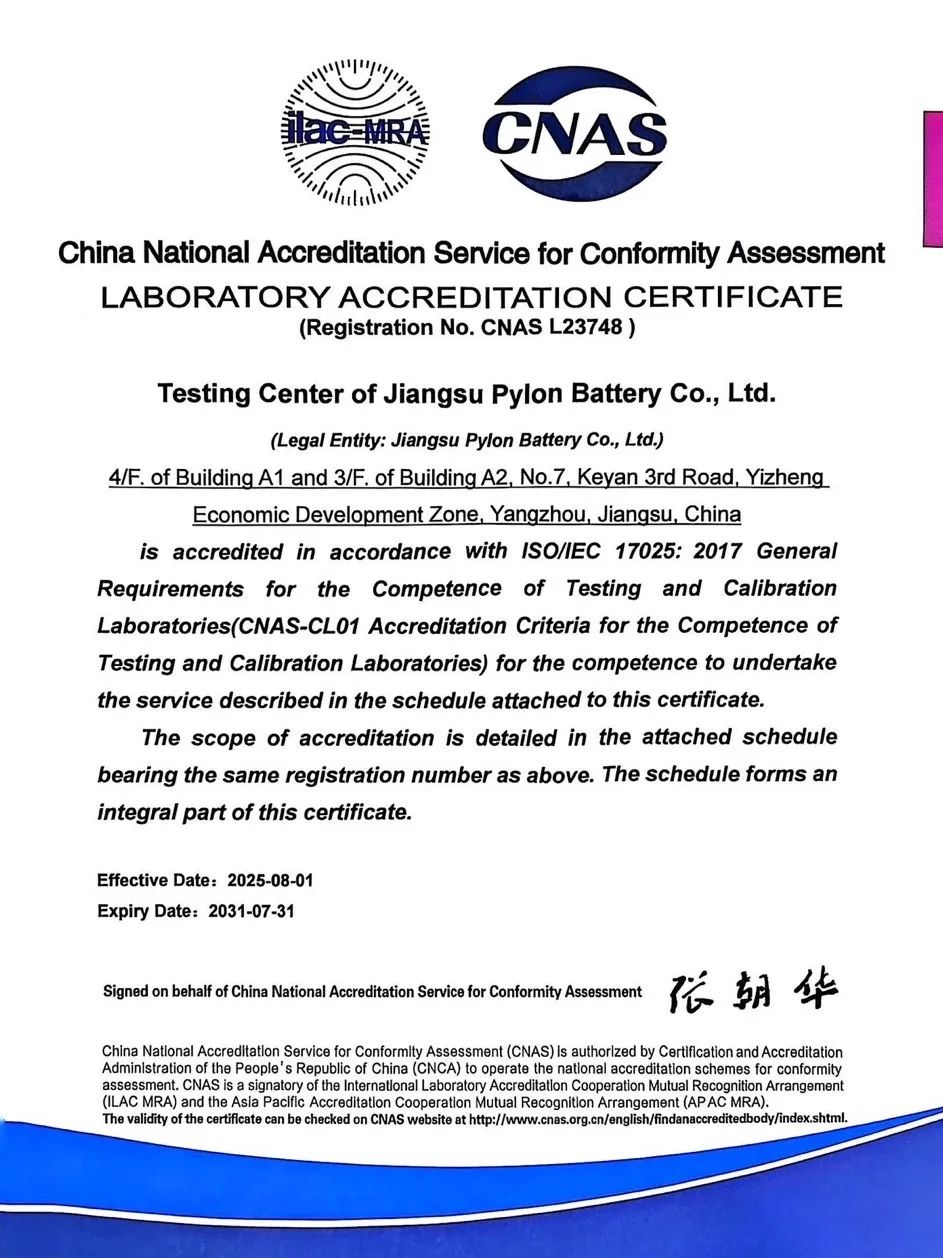 獲得CNAS認可后,派能科技實驗室在認可范圍內(nèi)出具的檢測報告可加蓋CNAS標識,其報告和結(jié)果可在全球上百個國家和地區(qū)實現(xiàn)互認,為產(chǎn)業(yè)鏈合作伙伴提供了權(quán)威的技術(shù)支持和質(zhì)量保障,推動行業(yè)高質(zhì)量發(fā)展,為達成“雙碳”目標貢獻力量。