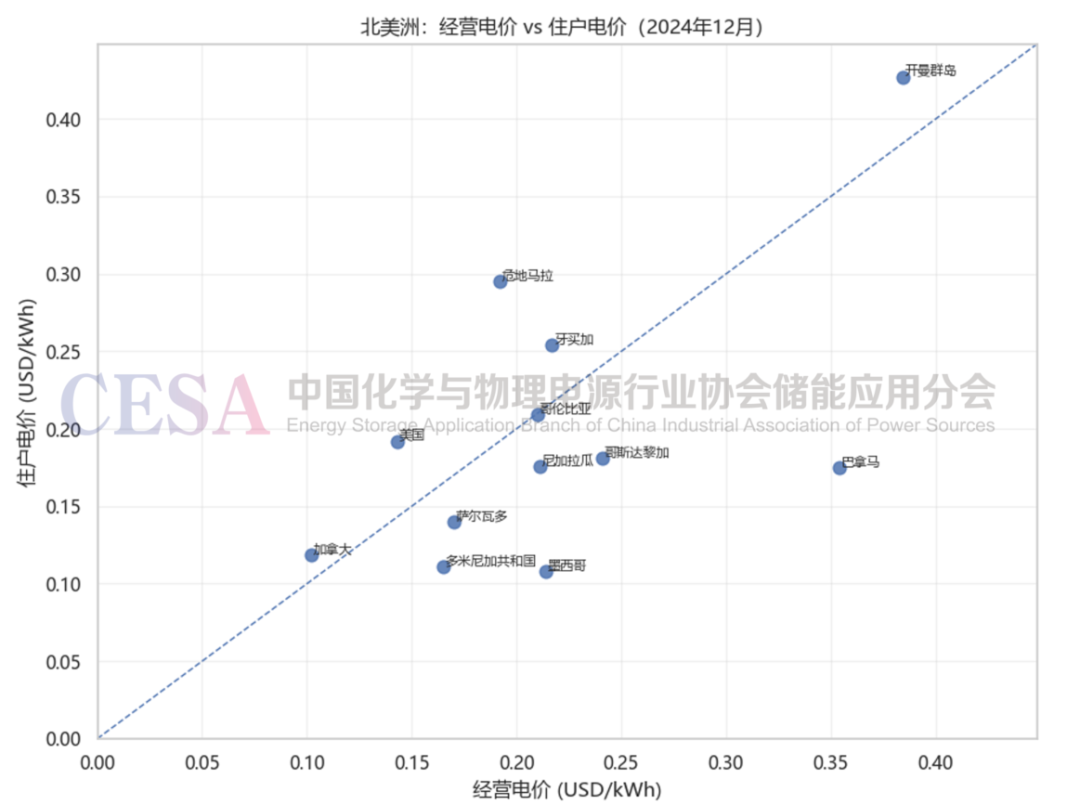 在廣闊的拉丁美洲和加勒比島嶼地區(qū),電力問(wèn)題則更為嚴(yán)峻。一方面,存在像危地馬拉(0.295美元/kWh)這樣居民電價(jià)極高的國(guó)家,儲(chǔ)能的經(jīng)濟(jì)性一目了然。另一方面,百慕大(0.487美元/kWh)和開曼群島(0.427美元/kWh)等島嶼經(jīng)濟(jì)體的電價(jià)更是冠絕全球,這背后是其對(duì)昂貴、污染且供應(yīng)不穩(wěn)的柴油發(fā)電的嚴(yán)重依賴。對(duì)于這些地區(qū)而言,儲(chǔ)能與光伏結(jié)合的解決方案,是實(shí)現(xiàn)能源獨(dú)立、降低經(jīng)濟(jì)成本、保障民生發(fā)展的根本路徑。