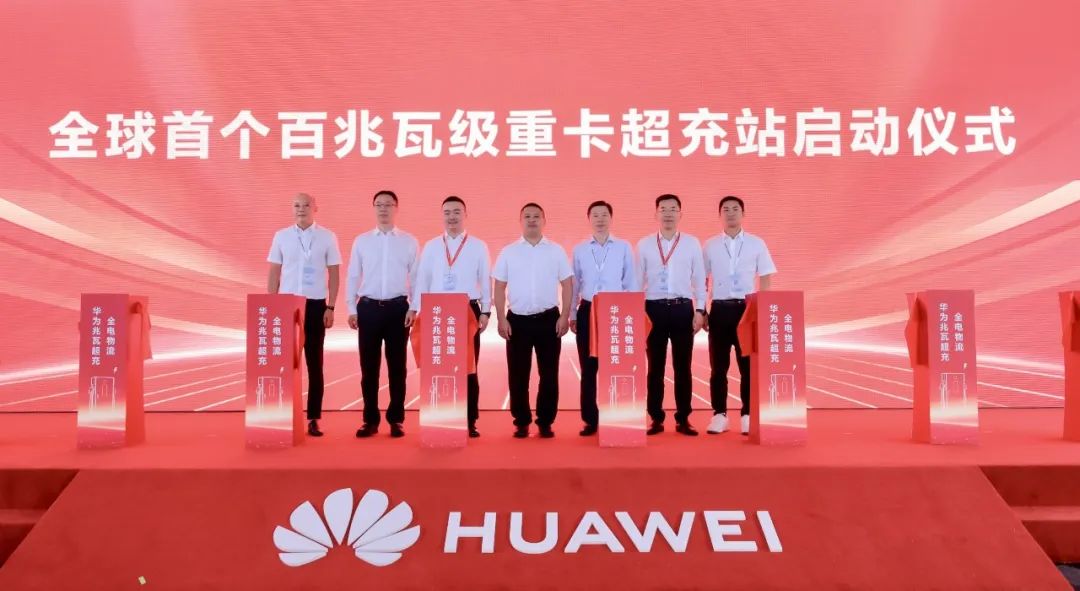 基于華為兆瓦超充打造的全球首個(gè)百兆瓦級重卡超充站啟動(dòng)儀式