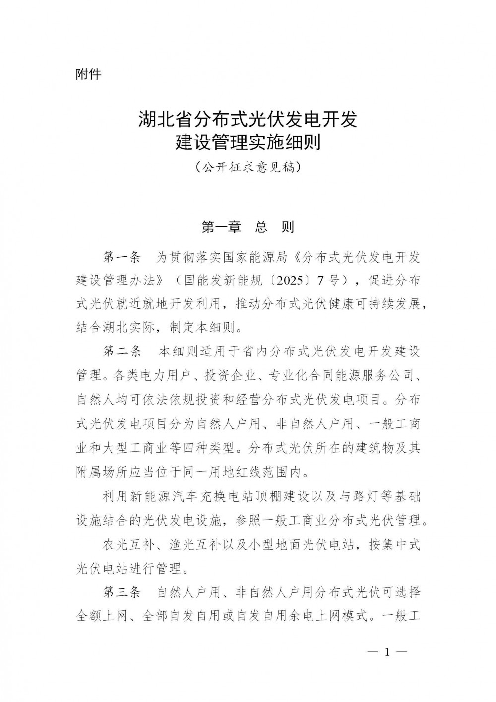 根據(jù)國家能源局《分布式光伏發(fā)電開發(fā)建設(shè)管理辦法》(國能發(fā)新能規(guī)〔2025〕7號(hào))要求,結(jié)合湖北省實(shí)際,省能源局研究起草了《湖北省分布式光伏發(fā)電開發(fā)建設(shè)管理實(shí)施細(xì)則(公開征求意見稿)》,現(xiàn)向社會(huì)公開征求意見。