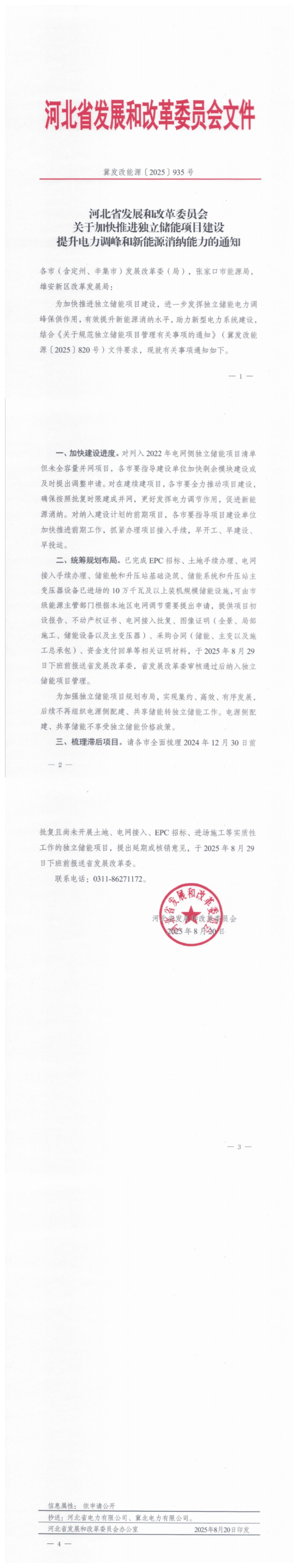 中國儲能網(wǎng)訊:近日,河北省發(fā)展和改革委員會發(fā)布《關(guān)于加快推進獨立儲能項目建設(shè)提升電力調(diào)峰和新能源消納能力的通知》。