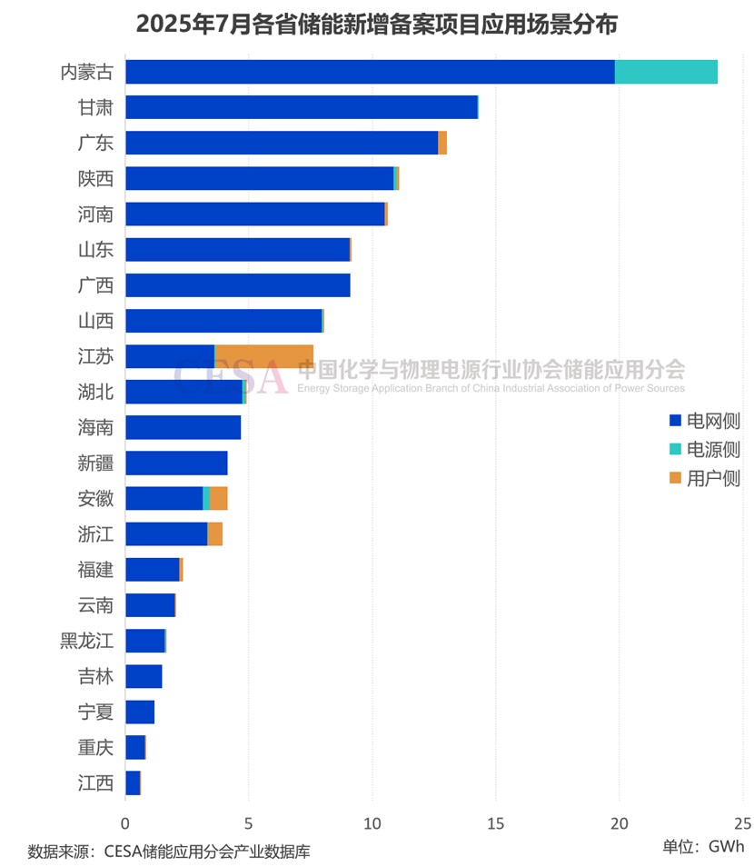 2025年7月,國(guó)內(nèi)共新增備案28個(gè)GWh級(jí)儲(chǔ)能項(xiàng)目,其中內(nèi)蒙古獨(dú)占12個(gè),成為絕對(duì)主力;此外,甘肅4個(gè),山西、山東、廣西各2個(gè)。