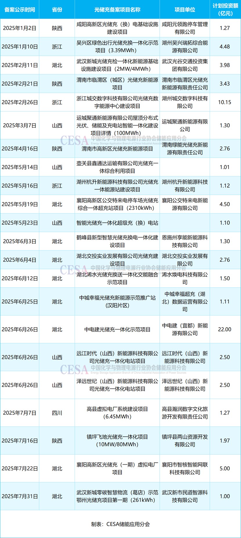 表 2025年1-7月計(jì)劃總投資超億元的光儲(chǔ)充新增備案項(xiàng)目