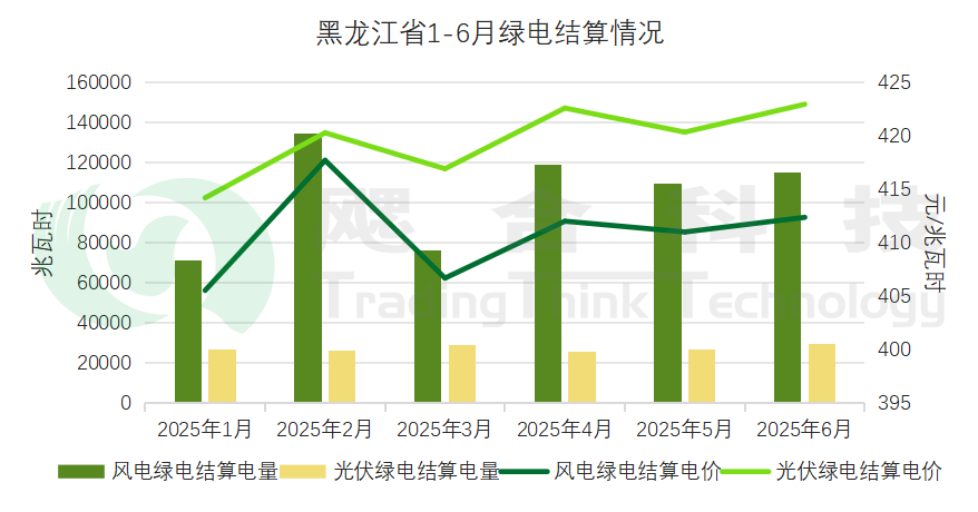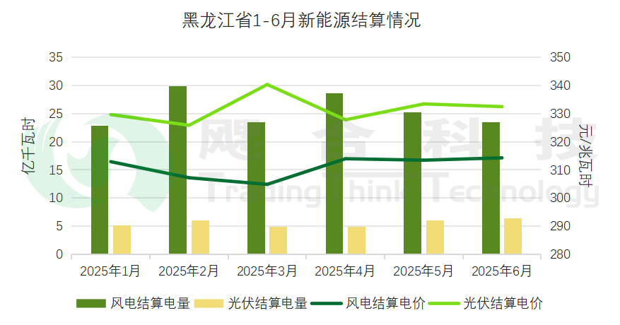 黑龍江省2025年1-6月新能源總計結(jié)算電量為186億千瓦時,風電1-6月結(jié)算均價為311元/兆瓦時,光伏1-6月結(jié)算均價為331元/兆瓦時。