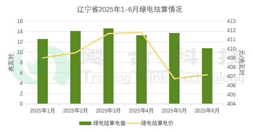 1-6月遼寧新能源機組總計結(jié)算綠電79.19億千瓦時,結(jié)算均價409.43元/兆瓦時。
