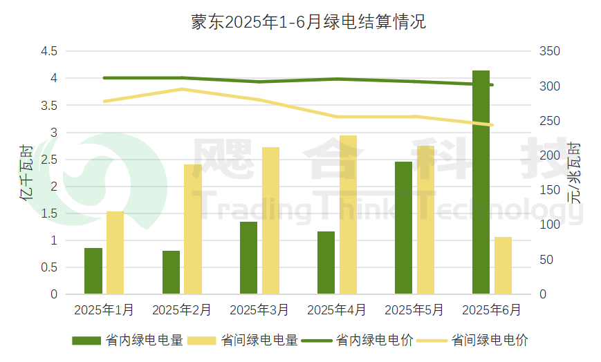 2025年1-6月寧夏結(jié)算綠電電量18.24億千瓦時,結(jié)算均價275.51元/兆瓦時。