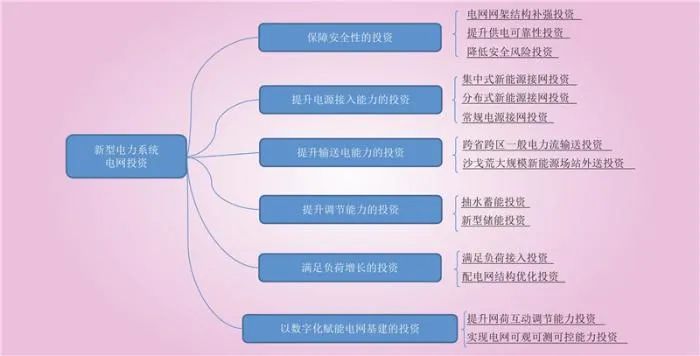 為實(shí)現(xiàn)“雙碳”目標(biāo),電力系統(tǒng)各環(huán)節(jié)形態(tài)發(fā)生顯著變化,電網(wǎng)是能源轉(zhuǎn)型的中心環(huán)節(jié)和新型電力系統(tǒng)的基礎(chǔ)平臺(tái),電網(wǎng)基建的投資功能面臨著提升新型電力系統(tǒng)電源接入能力、提升系統(tǒng)輸送電能力、提升系統(tǒng)調(diào)節(jié)能力、滿足系統(tǒng)負(fù)荷增長(zhǎng)以及提升系統(tǒng)數(shù)字化水平等方面新的要求,電網(wǎng)基建的功能化投資需求體系如圖1所示。